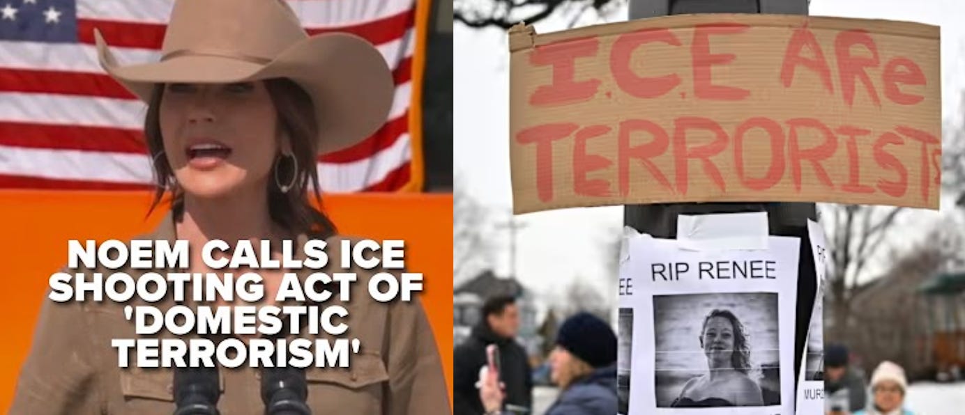 Instead, Kristi Noem calls Renée Good a domestic terrorist, and protestors respond that ICE are the domestic terrorists. This is operating in the wrong frame